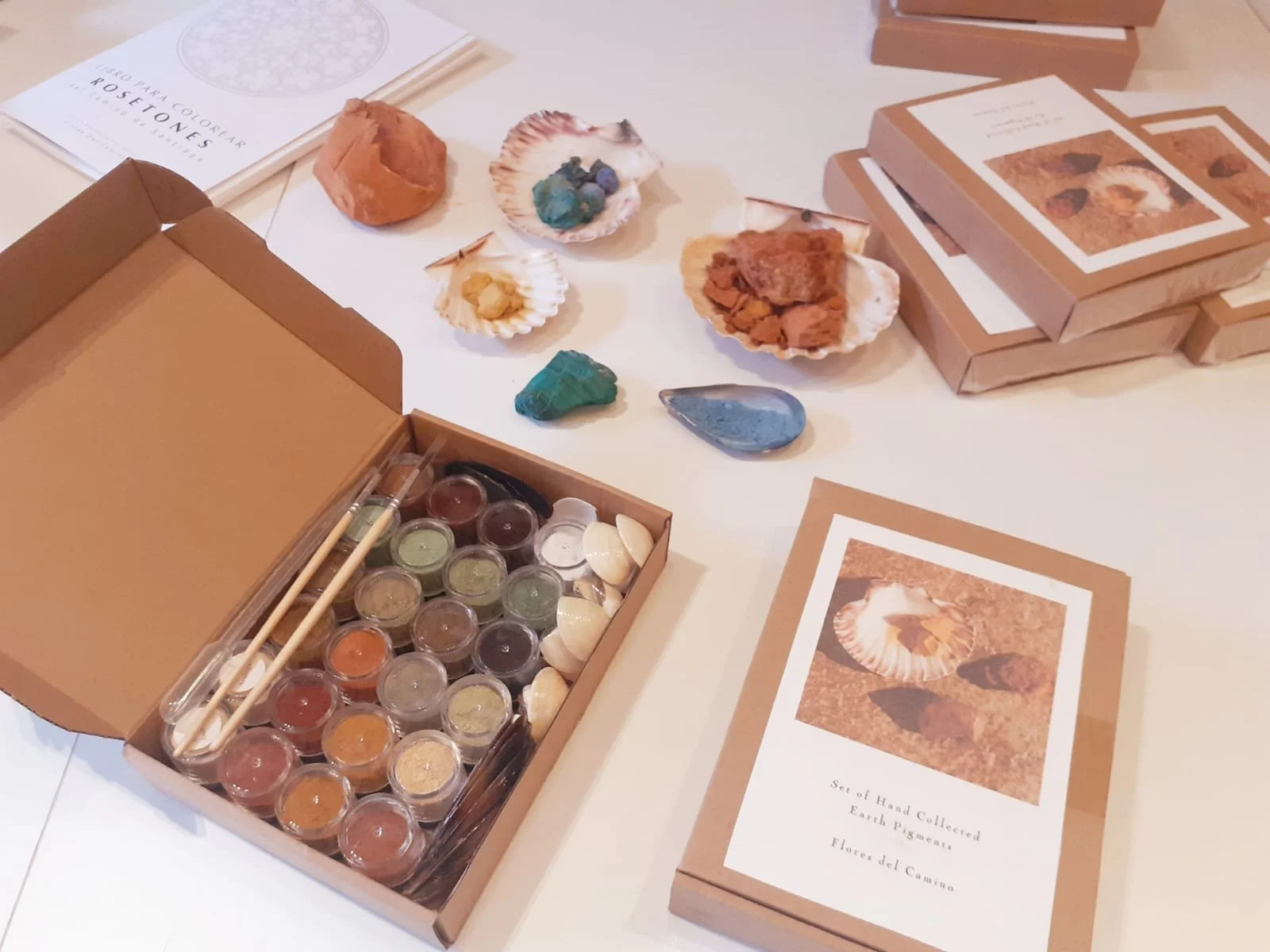 You may feel called to paint your roses using out set set of lovingly hand collected & hand prepared natural pigments by us from Camino earths (instructions of how to use and paintbrush and palettes included). For the moment we only sell the pigments alongside our rose window colouring book (on quality watercolour paper). In purchasing this set, you are helping us with book printing costs! Thank you!